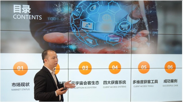 關(guān)于云展動(dòng)力及鴻威元宇宙會(huì)客廳,鴻威集團(tuán)云展動(dòng)力負(fù)責(zé)人陳良玉介紹道,云展動(dòng)力精準(zhǔn)獲客平臺(tái)歷經(jīng)多年打磨,現(xiàn)已集合了數(shù)字孿生云展系統(tǒng)、大數(shù)據(jù)獲客系統(tǒng)、精準(zhǔn)邀約系統(tǒng)、客戶管理系統(tǒng),形成了有效的智能獲客生態(tài)。針對(duì)“幫助企業(yè)獲客”的核心問題,云展動(dòng)力重磅推出了元宇宙會(huì)客廳,能夠完美復(fù)刻企業(yè)實(shí)景,讓精準(zhǔn)客戶不受時(shí)空限制,隨時(shí)隨地進(jìn)入云展廳參觀,完成逛展會(huì)、看產(chǎn)品、游產(chǎn)線等實(shí)時(shí)互動(dòng)操作,助力參展企業(yè)實(shí)現(xiàn)高效獲客,為國際采購商尋求優(yōu)質(zhì)供應(yīng)服務(wù)商創(chuàng)造條件。