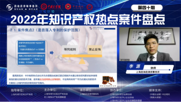 本期《知新大講堂》邀請(qǐng)到三位深耕知識(shí)產(chǎn)權(quán)行業(yè)多年的上海段和段律師事務(wù)所律師高璀璀、李源和丁浩,為大家進(jìn)行2022年知識(shí)產(chǎn)權(quán)熱點(diǎn)案件的盤(pán)點(diǎn)剖析,希望借此機(jī)會(huì)回顧過(guò)去一年間知識(shí)產(chǎn)權(quán)界發(fā)生的熱議標(biāo)志性知識(shí)產(chǎn)權(quán)案例,與各位知識(shí)產(chǎn)權(quán)行業(yè)人員及觀眾一起深入思考。